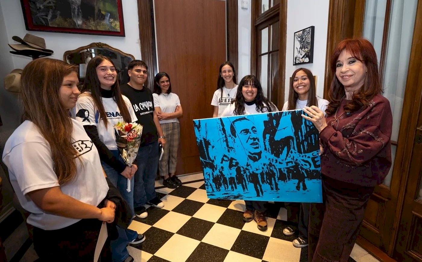 Cristina Fernández de Kirchner recibió en su casa de San José 1111, donde cumple prisión domiciliaria, a un grupo de siete jóvenes militantes de la Unión de Estudiantes Secundarios (UES) de La Plata.