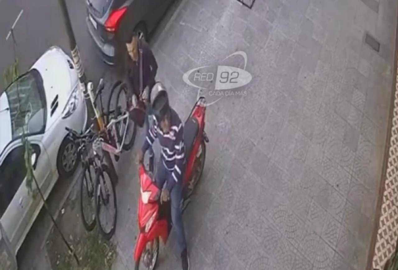 En cuestión de segundos y a plena luz del día, dos motochorros se robaron una bicicleta del centro platense y, aunque el accionar quedó registrado en una cámara de seguridad, hasta el momento no había personas detenidas.