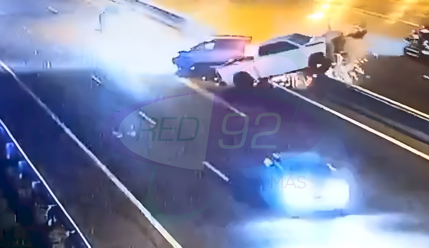 En este sentido, producto del choque, la Dodge RAM quedó volcada sobre esa contención.